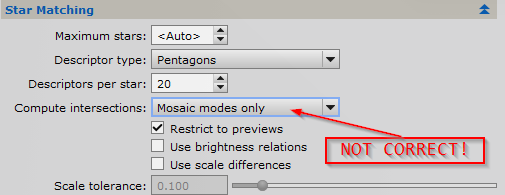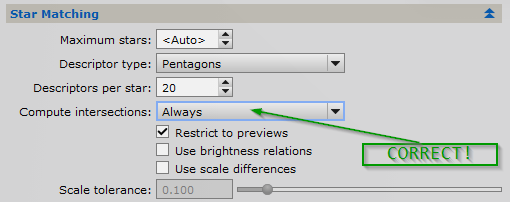 6) Under Star Matching, Select Compute intersections to Always. THIS IS IMPORTANT!