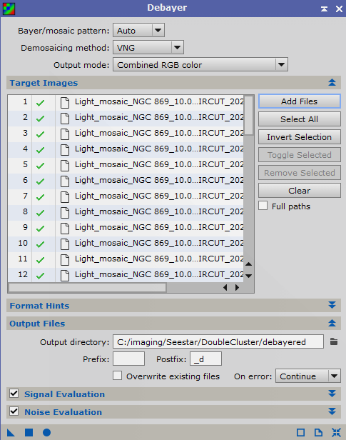 4) Add the debayered files.