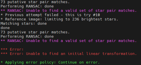 If you get errors for many of the frames during registration such as the following: