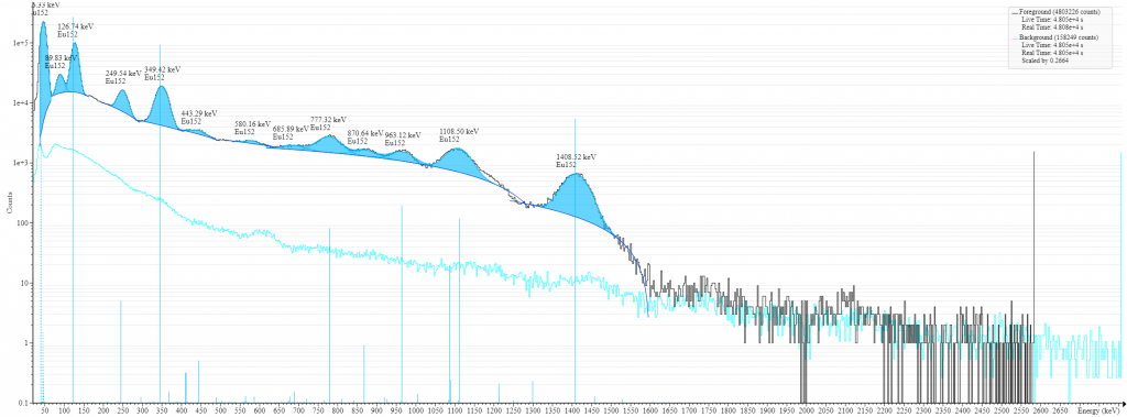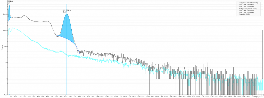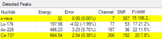 One thing to note is that the Cs-137 FWHM is 7.8% which is pretty close to the specifications of the Radiacode 103G of 7.4% ±0.3%.