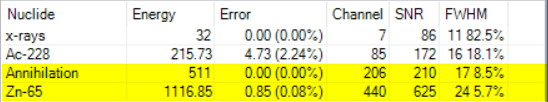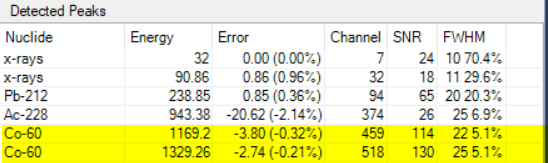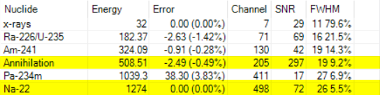 Looking at the numbers, they look pretty good on each of the files with percentages below 1%. I consider this a good first calibration, however, I do plan to further refine these in the near future for the higher energies, following more closely the procedure recommended using the Thorium Welding Rods and other sources. Once I do that, I would like to use Eu-152 to really dial it in.