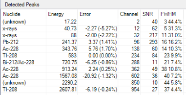 After filtering out isotopes that would not be present (like Pb-214 that the software identified), I compared my peak detections to the spectrum results from the reference: